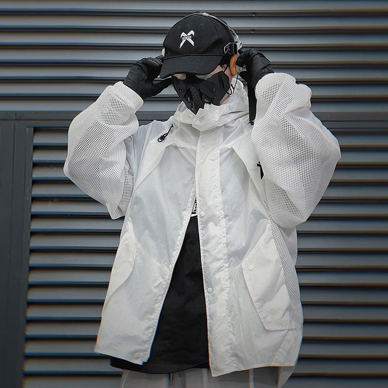 Men hooded sun protection jacket designed for outdoor sports and summer activities. Lightweight breathable UV protection clothing ideal for hiking, fishing, running, cycling, and travel. Comfortable quick dry jacket for active outdoor wear.
